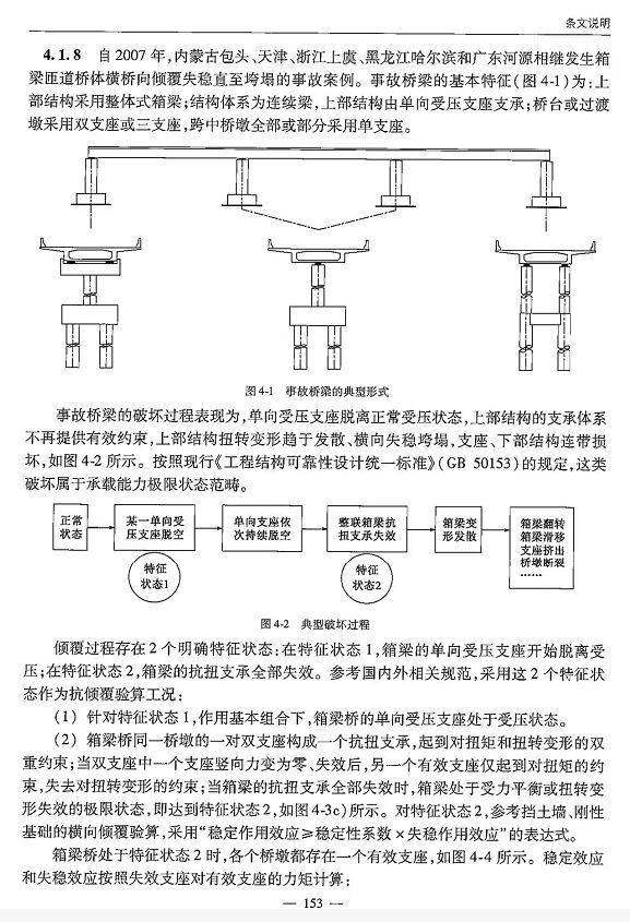 據(jù)專業(yè)標(biāo)準(zhǔn)了解,該處橋梁上部結(jié)構(gòu)采用整體式箱梁;結(jié)構(gòu)體系為連續(xù)梁,上部結(jié)構(gòu)由單向受壓支座體系;橋臺或過渡墩采用雙支座或三支座,跨中橋墩全部或部分采用單支座。該類型橋梁易被破壞的表現(xiàn)為:單向受壓支座脫離正常受壓狀態(tài),上部結(jié)構(gòu)的支承體系不再提供有效約束,上部結(jié)構(gòu)扭轉(zhuǎn)變形趨于發(fā)散、橫向失穩(wěn)垮塌,支座、下部結(jié)構(gòu)連帶損壞。參見行標(biāo)《公路鋼筋混凝土及預(yù)應(yīng)力 混凝土橋涵設(shè)計規(guī)范》(JTG 3362-2018)。