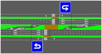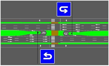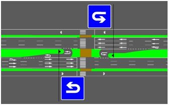 在交通工程設(shè)計中,為滿足路段車輛掉頭通行需求,可根據(jù)條件在路段渠化允許掉頭車道。城市快速路、無中央分隔帶的主干道上嚴禁設(shè)置路段掉頭,在設(shè)置車輛掉頭車道時,應(yīng)保證其對向交通為非飽和流量狀態(tài),同時道路寬度應(yīng)能滿足區(qū)域準(zhǔn)許通行的最大車輛掉頭行駛最低尺寸。以下列出路段允許掉頭的幾種設(shè)計方法和施策,供同行參考: