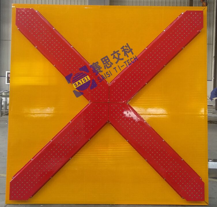 技術(shù)參數(shù):尺寸2000mm*2000mm;黃底、紅圖案、紅色LED管;LED點(diǎn)陣式主動(dòng)發(fā)光標(biāo)志;太陽能供電或外接市電。
