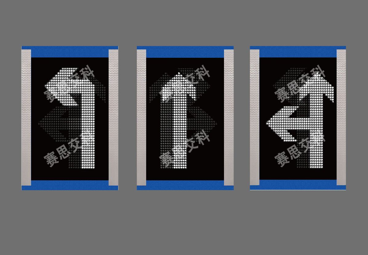 標(biāo)志版面的圖形、文字、符號等關(guān)鍵信息采用全自動鏤空雕刻工藝,內(nèi)置均光光源板,定向投射穿透專用透光膜及鏤空面,在標(biāo)志面板形成視覺柔和的面光源發(fā)光標(biāo)志版面,實現(xiàn)主動發(fā)光功能,提高在夜晚或惡劣交通環(huán)境中的全天候視認(rèn)效果,提升潮汐車道信息的遠(yuǎn)距離視認(rèn)和動態(tài)易觀察性。標(biāo)志參考圖如下: