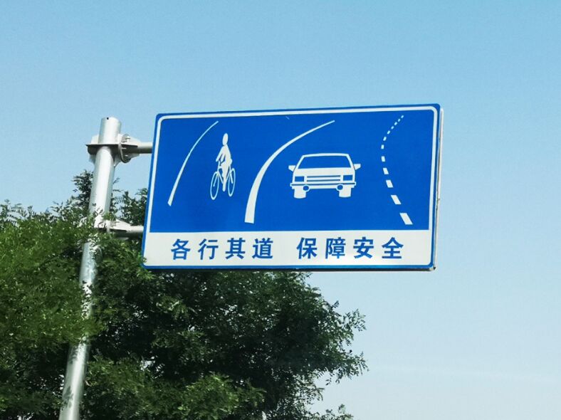 (一)標(biāo)語為:“各行其道、保障安全”。適合于機(jī)、非車道無硬性設(shè)施隔離場景。