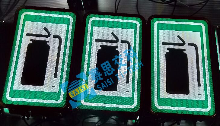 由于隧道內(nèi)若發(fā)生火災(zāi)、重大事故時(shí),其照明系統(tǒng)可能會緊急關(guān)閉,空間光照環(huán)境相對較差,所以相關(guān)規(guī)范均提出,隧道內(nèi)的消防指示標(biāo)志應(yīng)采用光電發(fā)光標(biāo)志。在國標(biāo)《城市道路交通標(biāo)志和標(biāo)志設(shè)置規(guī)范》(GB51038-2015)中提出:隧道內(nèi)指示緊急電話、消防設(shè)備、人行橫洞、行車橫洞、緊急停車帶、疏散等標(biāo)志,應(yīng)采用主動發(fā)光或照明式標(biāo)志,其他標(biāo)志宜采用主動發(fā)光或照明式標(biāo)志。