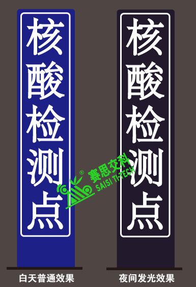 為做好新冠疫情防控,全國各個城市、鄉(xiāng)村都設(shè)置了大量的核酸檢測點,方便居民及時參與、配合核酸檢測。根據(jù)不同城市疫情的各自嚴重形勢,通常會出現(xiàn)全員核酸、或應(yīng)檢盡檢的檢測要求。居民們白天需要上班工作,通常會選擇下班后才去做核酸。在夜晚,為方便對核酸檢測點進行有效指示,特設(shè)計本“核酸檢測點”發(fā)光指示標志,具體參數(shù)如下:
