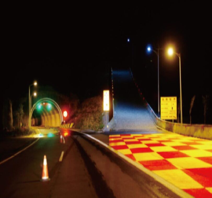 4、在隧道入口通道鋪裝長100-200米彩色防滑材料,以增大車輪滾動阻力系數(shù),縮短剎車距離;并且彩色鋪裝明顯產(chǎn)生分隔車道的效果;同時,彩色防滑路面材料可強(qiáng)化可視距離和醒目度,美化道路環(huán)境,顏色鮮艷持久 。