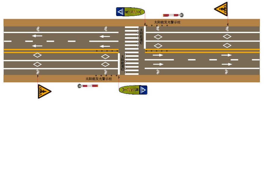 對角分流島是設(shè)置在交叉口對角線上的障礙物,以阻斷直行車流。其優(yōu)點是:不需要封閉街道,只需要改變現(xiàn)有街道的方向;能保證行人和自行車通行。缺點是:需要重新改造拐彎處的路緣,造價可能比較高;內(nèi)部和救援車有時需要繞行。