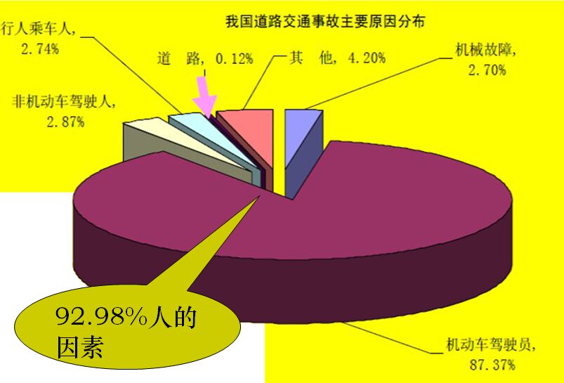 海因里希用多米諾骨牌來形象地描述事故因果的連鎖關(guān)系:在多米諾骨牌系列中,一只骨牌被碰倒了,其余的骨牌將相續(xù)按波的方向被碰到,如果移去其中一只骨牌,則連鎖反應(yīng)被破壞,事故被終止。他的理論人為,防止人的不安全行為,消除非人為因素的不安全狀態(tài),以此中斷事故連鎖進(jìn)程,從而規(guī)避事故發(fā)生。根據(jù)《墨菲定律》的描述,交通要素中一旦有設(shè)計(jì)缺陷存在,發(fā)生事故是時(shí)間累計(jì)后的必然結(jié)果。由于遺傳因素、身體因素、心理因素等多重作用,會對人的判斷力、行動(dòng)力產(chǎn)生影響,在調(diào)取大量事故資料研究后發(fā)現(xiàn),導(dǎo)致事故發(fā)生的直接原因中,人為因素的影響占據(jù)很大一部分。